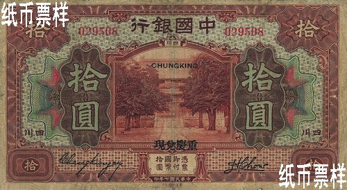 四川地名"重慶兌現(xiàn)"國幣券拾圓券(1918)