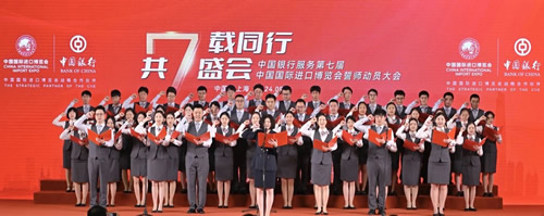 ▲ 9月26日,中國銀行在國家會展中心(上海)召開“七載同行·共‘七’盛會——服務(wù)第七屆中國國際進(jìn)口博覽會誓師動員大會”。