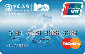 百年中行紀(jì)念版長(zhǎng)城環(huán)球通信用卡