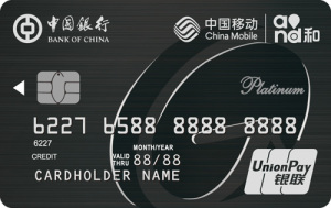 中銀長城中國移動信用卡是中國銀行及中國移動分別與萬事達卡國際組織、中國銀聯(lián)合作推出的聯(lián)名信用卡產(chǎn)品。該產(chǎn)品具有白金卡及金卡兩種產(chǎn)品等級,融合金融與通信服務(wù)優(yōu)勢,致力于滿足您對多樣化品質(zhì)生活的追求。