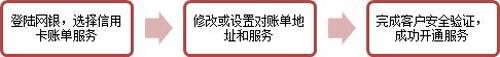 3. 您可登陸網(wǎng)銀,選擇“信用卡賬單服務(wù)”,開通電子對賬單和推入式對賬單服務(wù),更新郵箱和手機賬單地址,完成網(wǎng)銀安全信息驗證后即可開通服務(wù)。