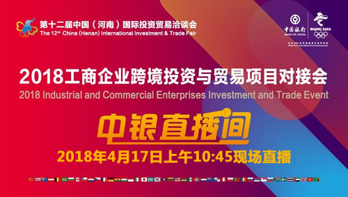 4月17日,中國(guó)銀行與河南省人民政府共同主辦的“2018工商企業(yè)跨境投資與貿(mào)易項(xiàng)目對(duì)接會(huì)”將在鄭州國(guó)際會(huì)展中心舉行,這是中國(guó)銀行在全球舉辦的第43場(chǎng)跨境撮合活動(dòng)。屆時(shí),河南省長(zhǎng)陳潤(rùn)兒,中國(guó)銀行董事長(zhǎng)陳四清、副行長(zhǎng)張青松等將出席開幕式。