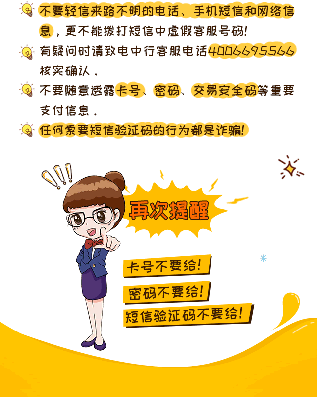 客戶服務(wù)與投訴熱線:95566(中國境內(nèi));+86(區(qū)號(hào))95566(中國境外) 信用卡客服與投訴熱線:40066-95566(中國境內(nèi)); +86-10-66085566(中國境外)