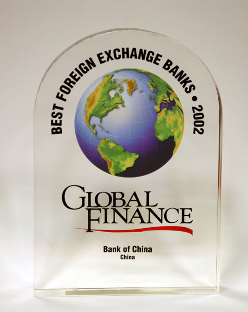 In the January 2002 issue of the Global Finance, Bank of China was named as the "Best Foreign Exchange Bank – China".