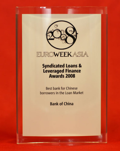 In a selection for the Syndicated Loans & Leveraged Finance Awards 2008, Bank of China was voted as the "Best Bank for Chinese Borrowers in the Loan Market". These awards, initiated by the renowned Euroweek, were voted on by delegates from financial institutions in the Asia Pacific (including local branches of international banks), borrowers, investors, credit rating agencies, and lawyers specializing in syndicated loans and others.