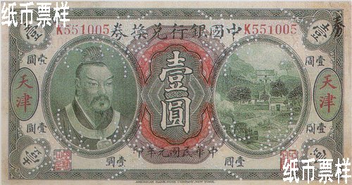 The Front of One-Yuan Tianjin Local Redeemable Note Bearing the Portrait of Emperor Huang Di