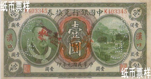 The Front of One-Yuan Hankou Local Redeemable Note Bearing the Portrait of Emperor Huang Di