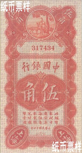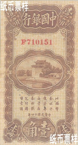 In June 1925, Bank of China issued a ten-yuan national currency note of Shanghai which was printed by the American Bank Note Company in 1924. In 1925, it also issued the lengthwise national currency notes of Shanghai in fractional denominations of 10 cents, 20 cents and 50 cents printed by Waterlow & Sons Limited, London. In 1926, it issued a five-yuan national currency note of Shanghai printed by American Bank Note Company.