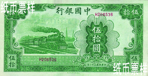 Bank of China issued a 50-yuan legal tender note printed by the Dah Tung Book Co., Ltd. in 1942.
