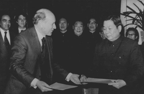 On April 4, 1980, Wang Weicai, Vice President of Bank of China, and Dun Xin, Director of Asia Department of IMF, signed the memorandum on resumption of China's lawful seat in IMF.