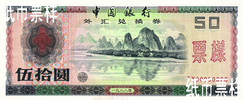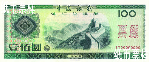 Foreign exchange certificate was a RMB certificate with exchange value rather than a currency, which could only be used as a payment instrument within a specified scope for the equivalent value of RMB. In March, 1980, Bank of China formulated Provisional Regulations of Bank of China on Administration of Foreign Exchange Certificates, specifying that: the par value of the foreign exchange certificates is divided into 100 yuan, 50 yuan, 10 yuan, 5 yuan, 1 yuan, 0.5 yuan and 0.1 yuan of RMB unit; foreigners of short-term stay in Chinese Mainland must use foreign exchange certificates to buy specified goods. When foreigners used the foreign exchange certificates in exchange for foreign currencies at the designated foreign currency exchange outlets, Bank of China would issue an "Exchange Certification" to them, with which the customers could redeposit the foreign exchange certificates they held as special type of RMB deposits or foreign currency deposits and the like with Bank of China within six months.