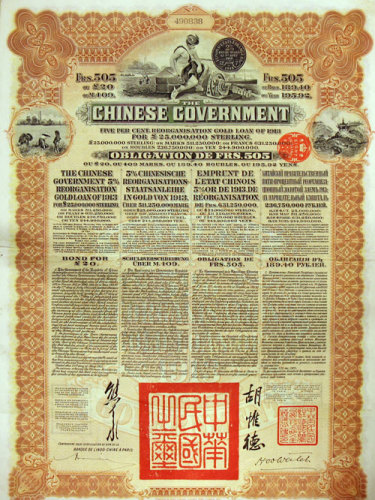 In 1913, the Chinese government issued government bonds abroad via Bank of China.