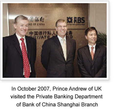 Bank of China tries continuously to perfect the individual customer service system by setting up 366 wealth management centers and over 1,000 wealth management studios with a specialized wealth management team of over 200 wealth management consultants and over 2,500 wealth managers to provide professional services of investments and wealth management schemes and series products. In 2007, the bank started the first private banking service in China with private banking departments set up in Beijing and Shanghai.
