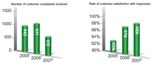 Bank of China pays high attention to the customer satisfaction with its banking services and does its best to improve the service quality by getting acquainted with customers' needs through non-scheduled customer satisfaction surveys. With persistent efforts, cases of customer complaint have declined greatly and rate of customer satisfaction with responses risen year by year.