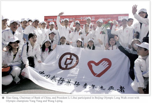 Bank of China organized such activities as the Olympic financial service month and the Olympic financial service skill contest among employees to select Olympic volunteers and spread the Olympic spirit. The bank recognized the year 2008 as the "Olympic Service Year" with a view to enhancing Olympic publicity, strengthening service awareness and improving service quality under the theme of "Serving the Olympics".