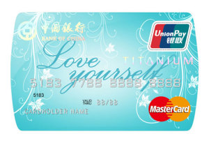 As a dual-currency credit card under international standards, Bank of China Titanium Lady Card is issued to urban office ladies by Bank of China and can be used all over the world. Besides the financial functions including revolving credit, cash advance, free SMS and flexible installments, Bank of China also offers high credit line, grace period up to 56 days, exclusive annual financial statements, reward point program, and preferential merchants network covering China's mainland, Hong Kong and Macau.