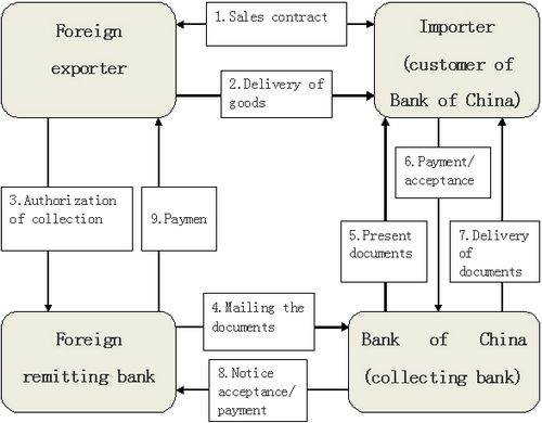 1. The foreign exporter initiates collection by submitting relevant documents to its bank after the preparation and shipment of goods.