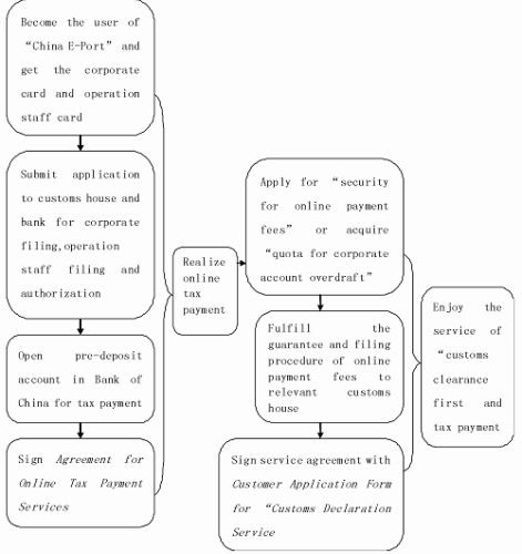 "Instant customs declaration" is put forward by Bank of China in 2002. It is an online payment system developed by Bank of China and General Administration of Customs for customs tax payment of import/export enterprises. This product connects customs system and banking business system by means of modern information technology, and alters the way of traditional tax paying. It provides customers with accurate, convenient and swift tax paying service online and greatly improves the efficiency of import/export enterprises.
