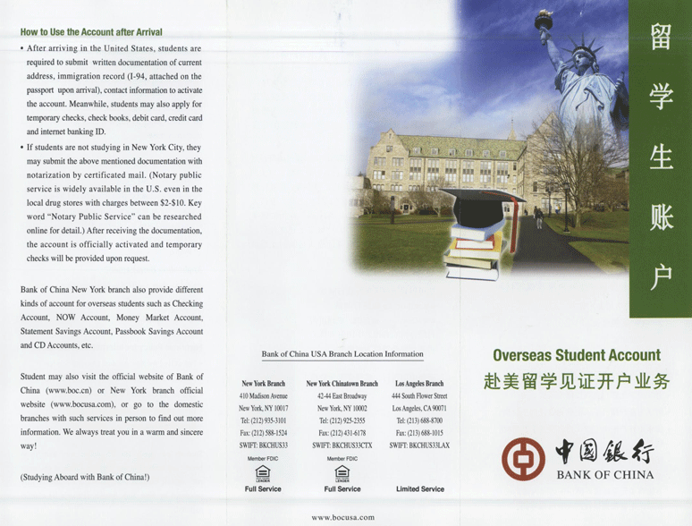 43-25 Main Street Flushing, NY11355 USA | 電話:1-212-925-2355 傳真:1-718-321-3733 郵箱:overseastudent@bocusa.com 網(wǎng)點(diǎn)詳情 >> |